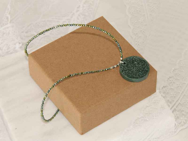 Be the first to review “Κολιέ πράσινο με ιριδίζουσες γυάλινες πέτρες”