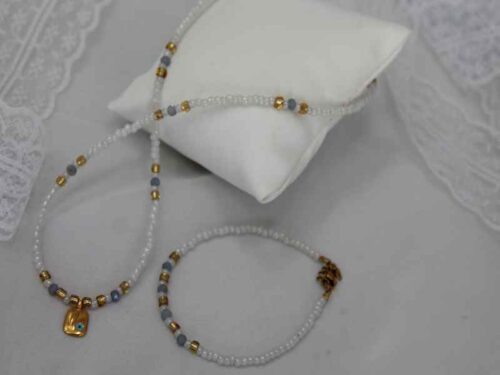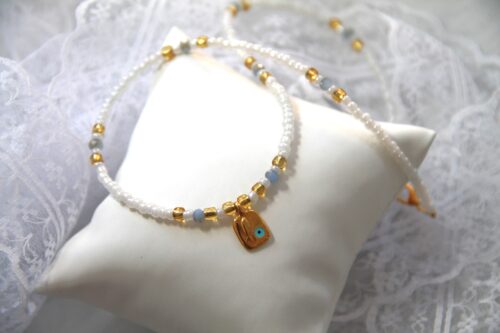 • Σετ Κολιέ Και Βραχιόλι με Ημιπολύτιμους Λίθους και Επιχρυσωμένο Μάτι