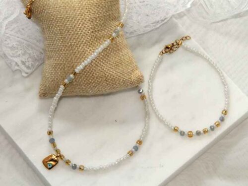 Σετ Κολιέ Και Βραχιόλι με Ημιπολύτιμους Λίθους και Επιχρυσωμένο Μάτι